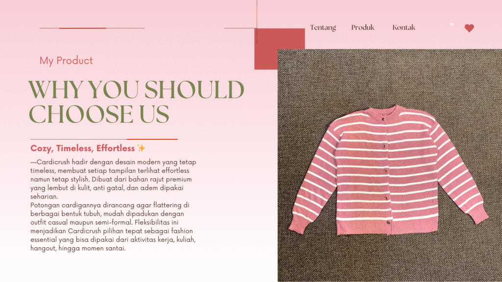 Stylish Tanpa Ribet Cardigan ini membuatmu tampil effortless, mengubah outfit biasa menjadi luar biasa yang cocok untuk segala kesempatan—jangan lewatkan kesempatan ini!